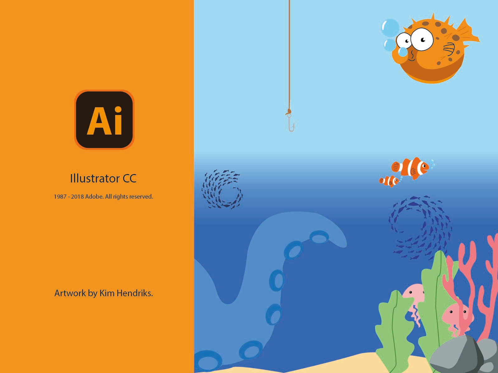 Voor deze schoolopdracht ontwierp ik een geheel eigen illustratie in Adobe Illustrator, geïnspireerd door een onderwaterthema. Alles werd zelf gemaakt: van zeewier en vissershaakjes tot de pufferfish en een school vissen in donkerblauwe schaduwen. Het project laat zien hoe illustratie, detail en compositie samen een levendige scène creëren.